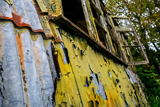 On our recent tour of the disused RAF Binbrook airfield we saw several old building in various states of decay.  This Nissen Hut probably dates from WW2 and might have been used as a store or, more likely, as a place for pilots waiting to be "scrambled" for an air raid.